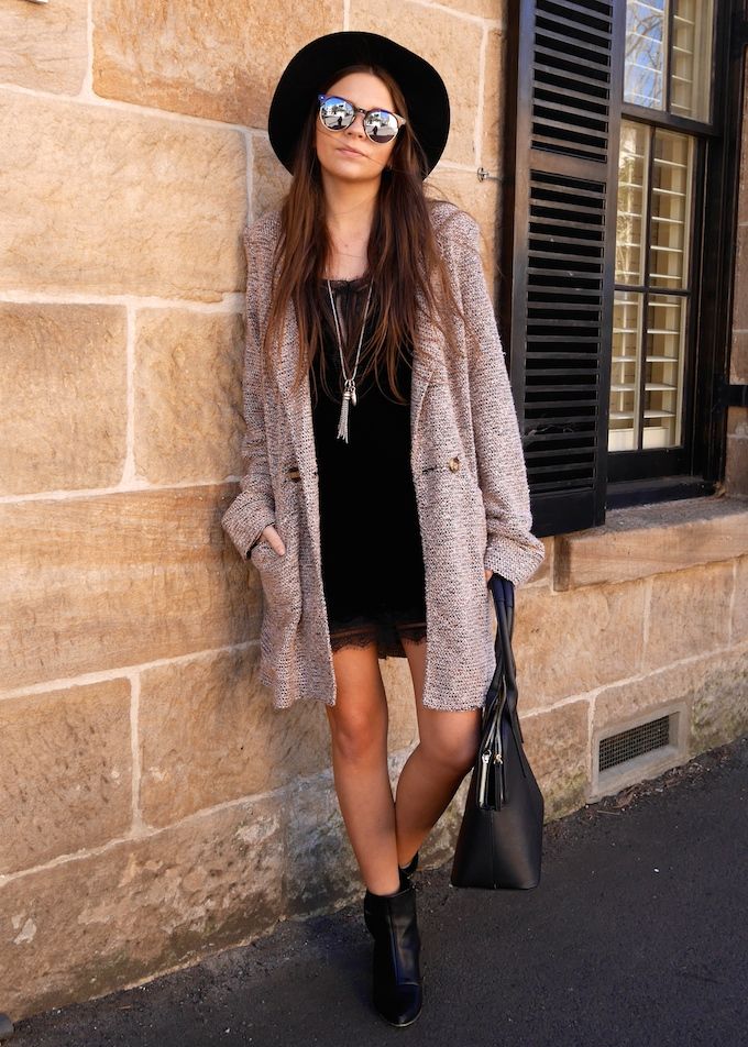 This is a near perfect outfit in my mind - all credit going to the clothes of course! I love this coat as it's so slouchy and paired with this fancy, velvety dress - it's a great contrast. I call it "New York in my nighty'. That cool with you guys? Cool. Have great weekends kids!