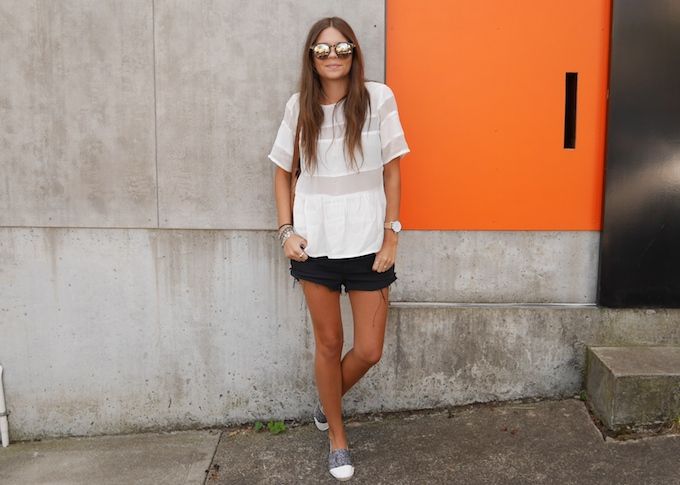 wearing: Top - Chip Chop, Shorts - Topshop, espadrilles - Urge, watch - The Horse, sunnies - Le Specs, bag - vintage.