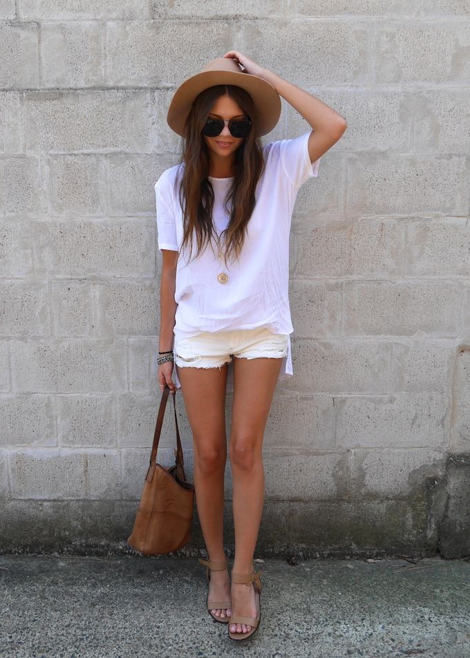 wearing: tee - Market HQ, shorts - asos, hat - Lack of Color, shoes - Wanted Shoes, necklace - Sportsgirl, sunglasses - Zero UV, bag - vintage.